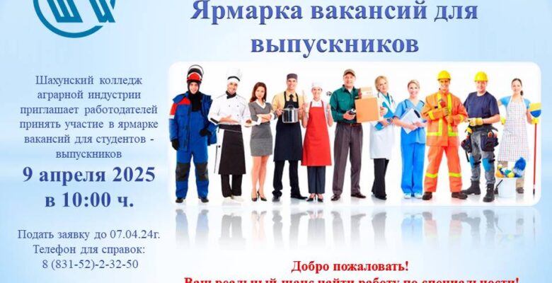 Шахунский колледж аграрной индустрии приглашает работодателей на ярмарку вакансий для выпускников, которая состоится 09 апреля 2025 года в 10.00. по адресу: г. Шахунья, ул. Тургенева, д. 15. От pr-manager Опубликовано 01/04/2025 Трудоустройство, Центр содействия трудоустройству 262 views